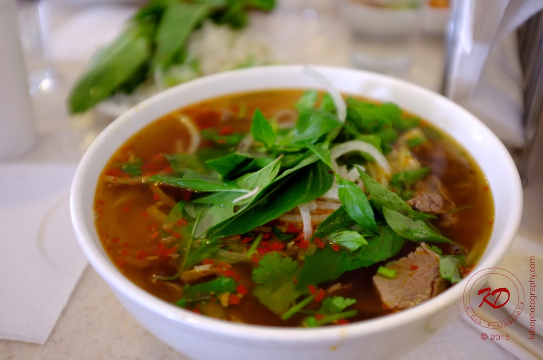 One of my favourite Vietnamese dishes, Bún bò Huế: rice vermicelli in a spicy and flavorful beef soup, cooked in the style of the ancient royal court at Huế. Regrettably, this particular bowl that day was missing was the traditional cubes of congealed pork blood. It was still pretty damn good, nonetheless.