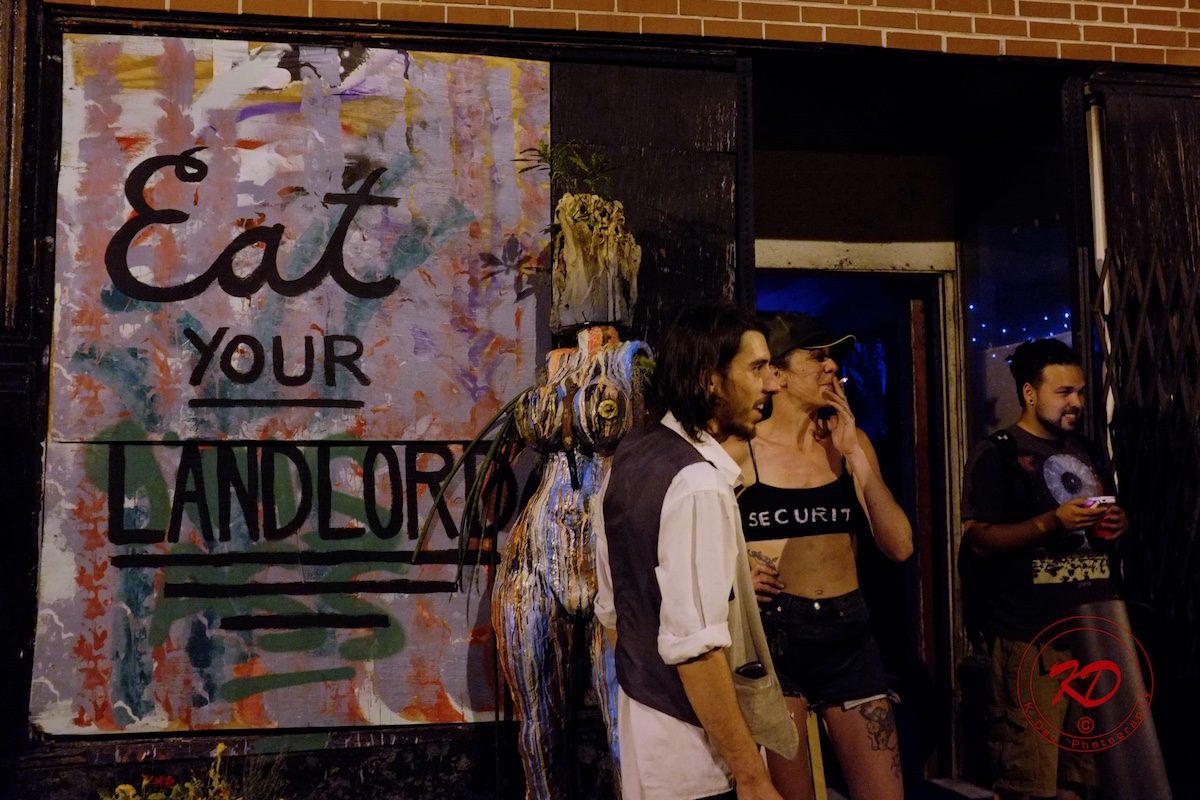 to even an eviction eve party at which a heavy metal band was rehearsing in the kitchen of the condemned building,
